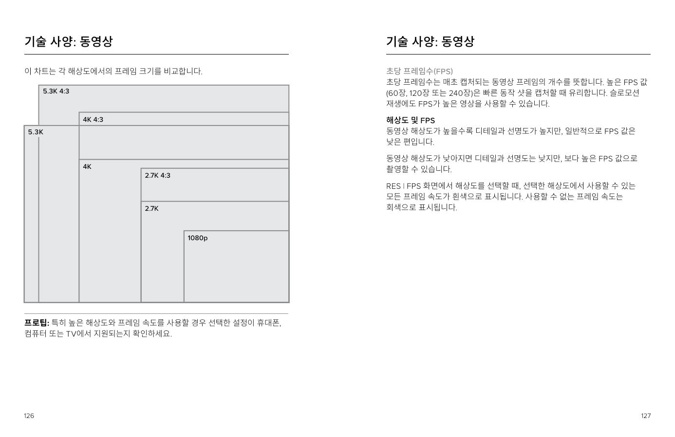 기술 사양: 동영상 124p