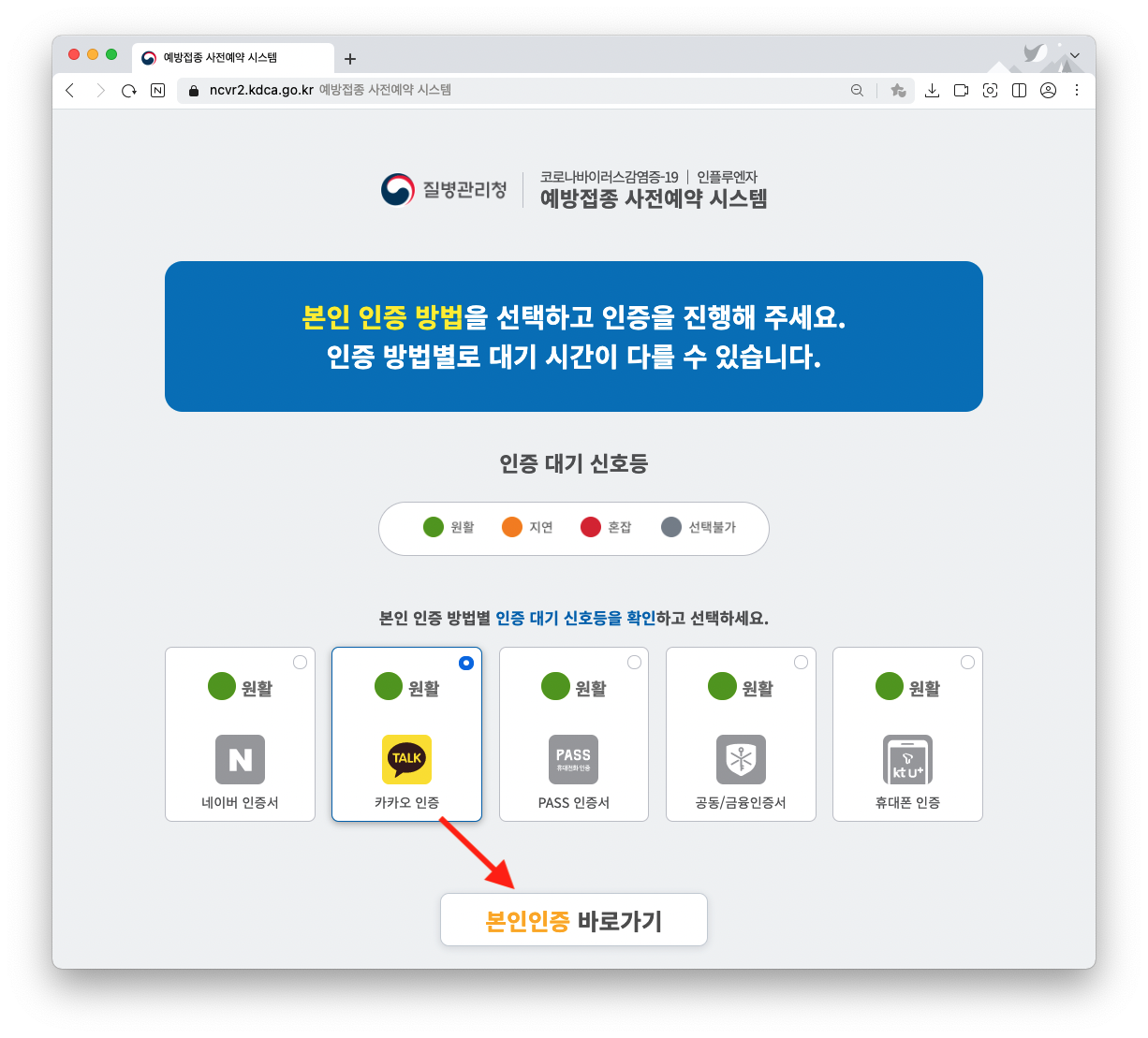 본인 인증 방법 선택 > 본인인증 바로가기 클릭