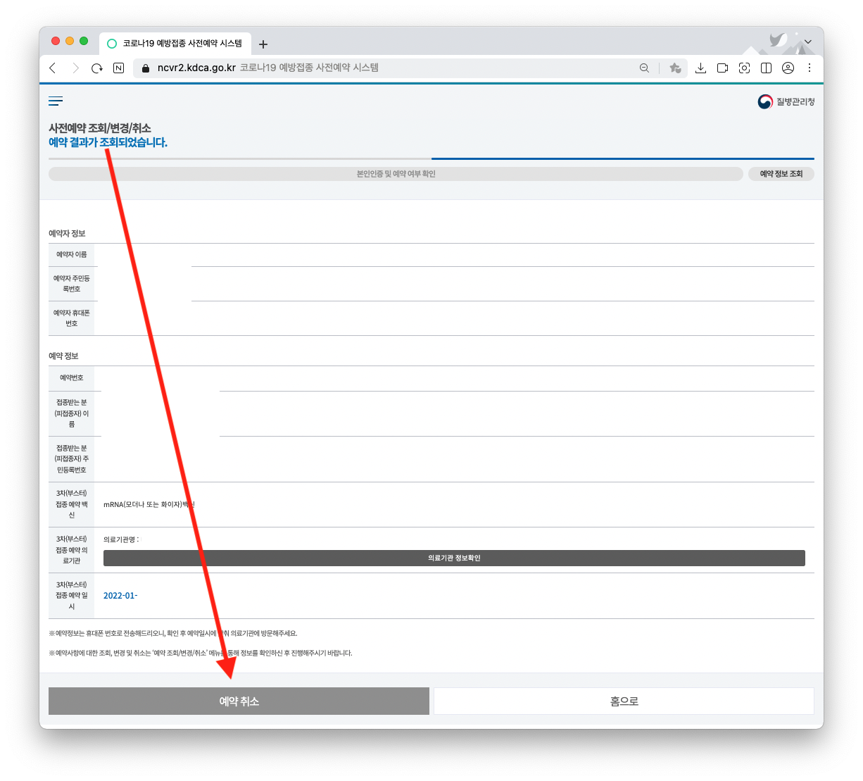 "코로나 백신 3차 예약 후 개인 사정 등에 의해 예약을 취소하는 방법입니다."