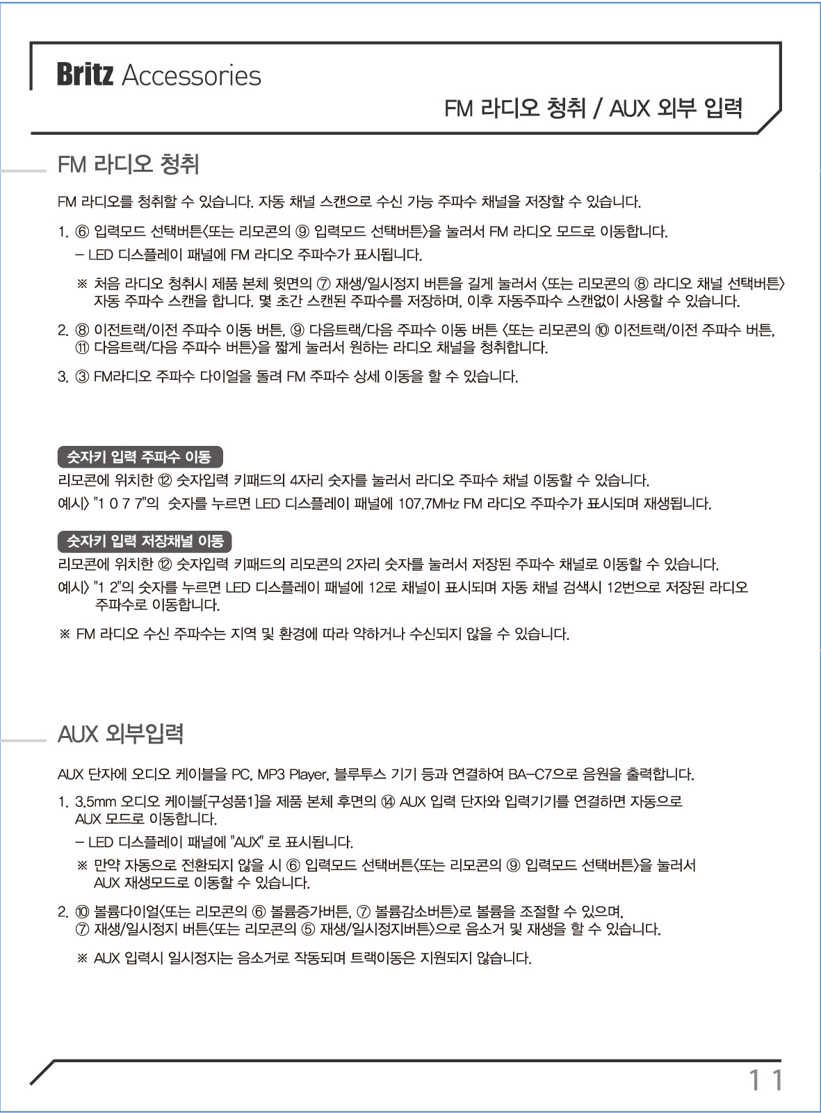 FM 라디오 청취 / AUX 외부입력 - 11p