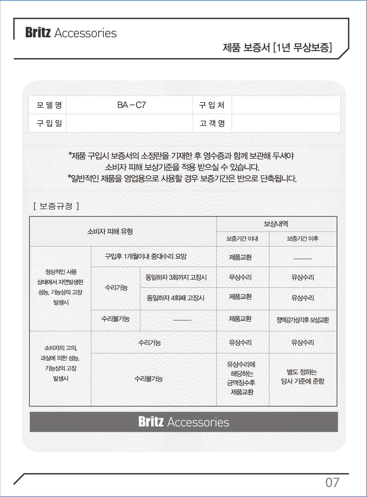 제품 보증서 - 07p