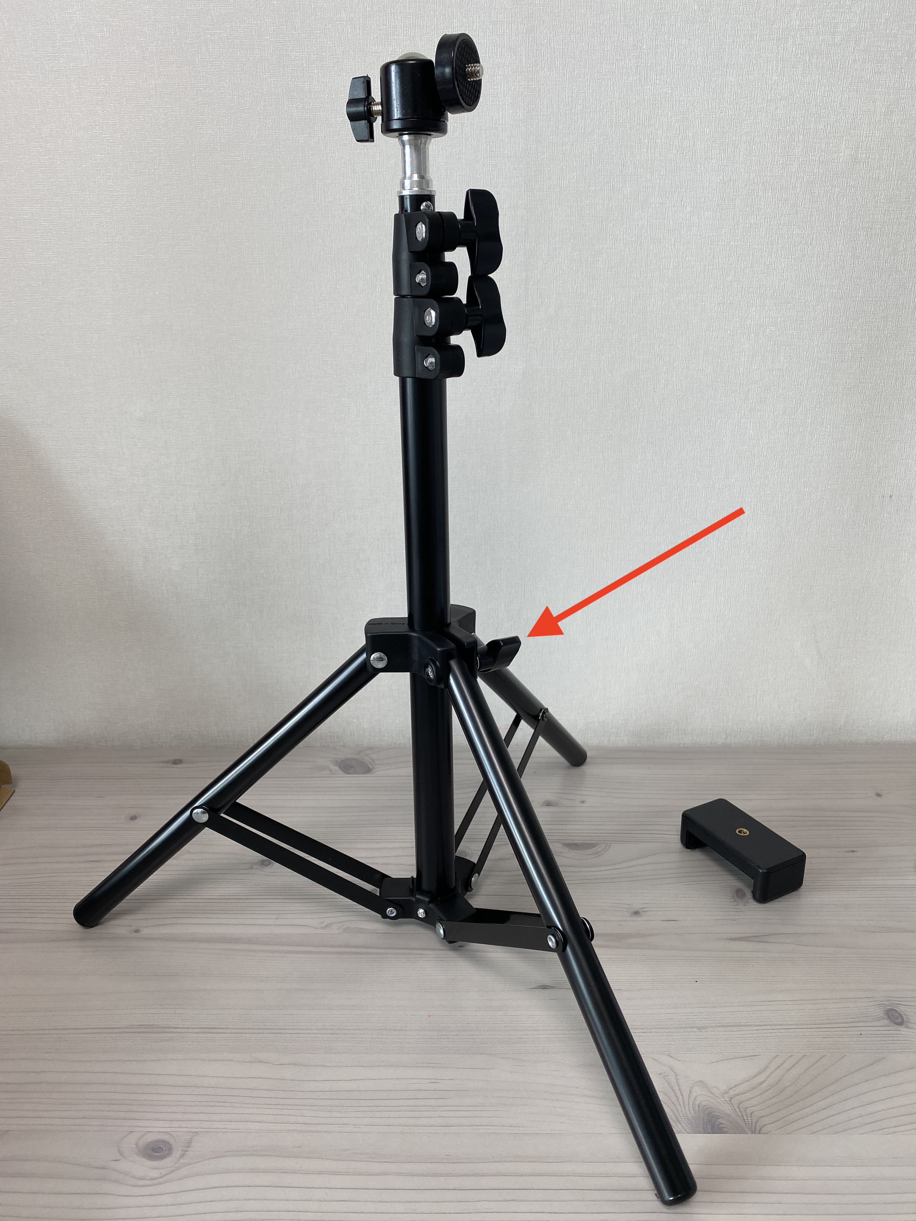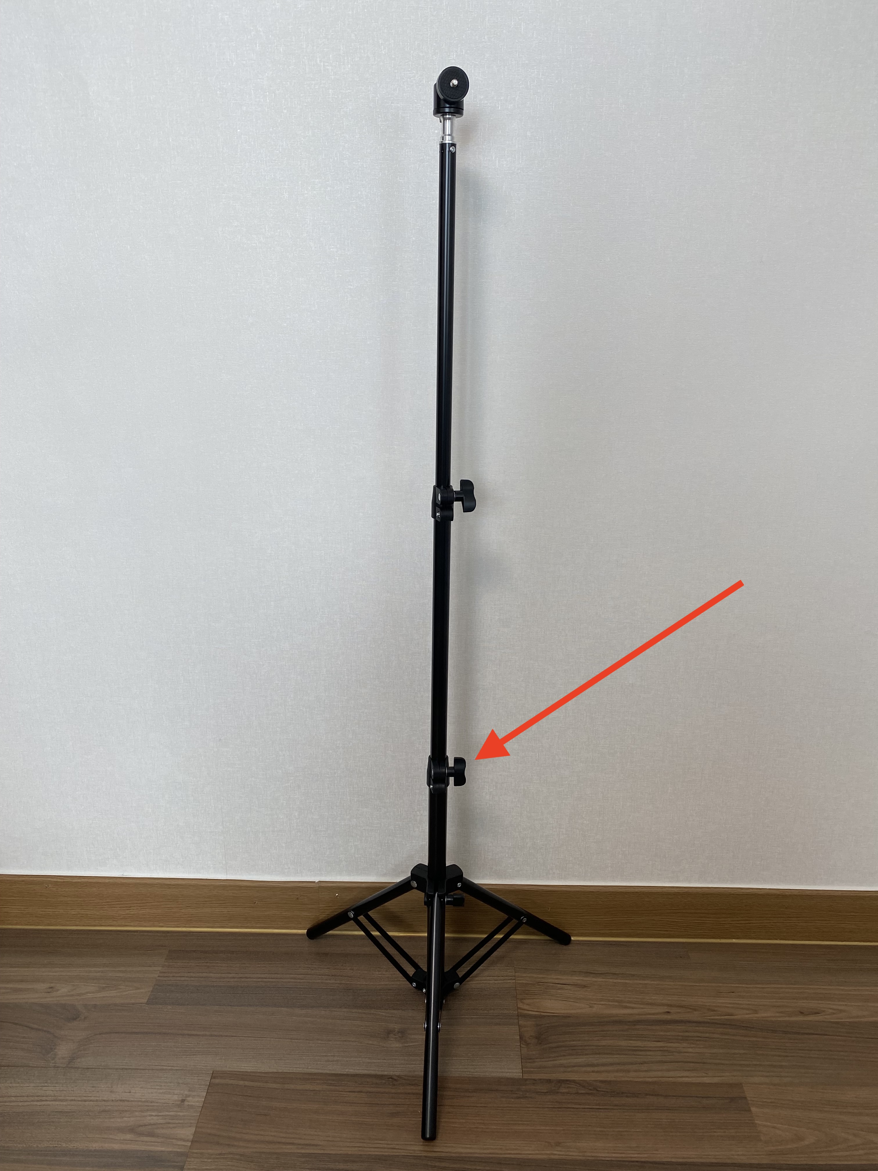 "스틸로 제작된 삼각대는 안정성있게 바닥에 고정되어 촬영중에도 흔들림 없는 안정감을 제공합니다."