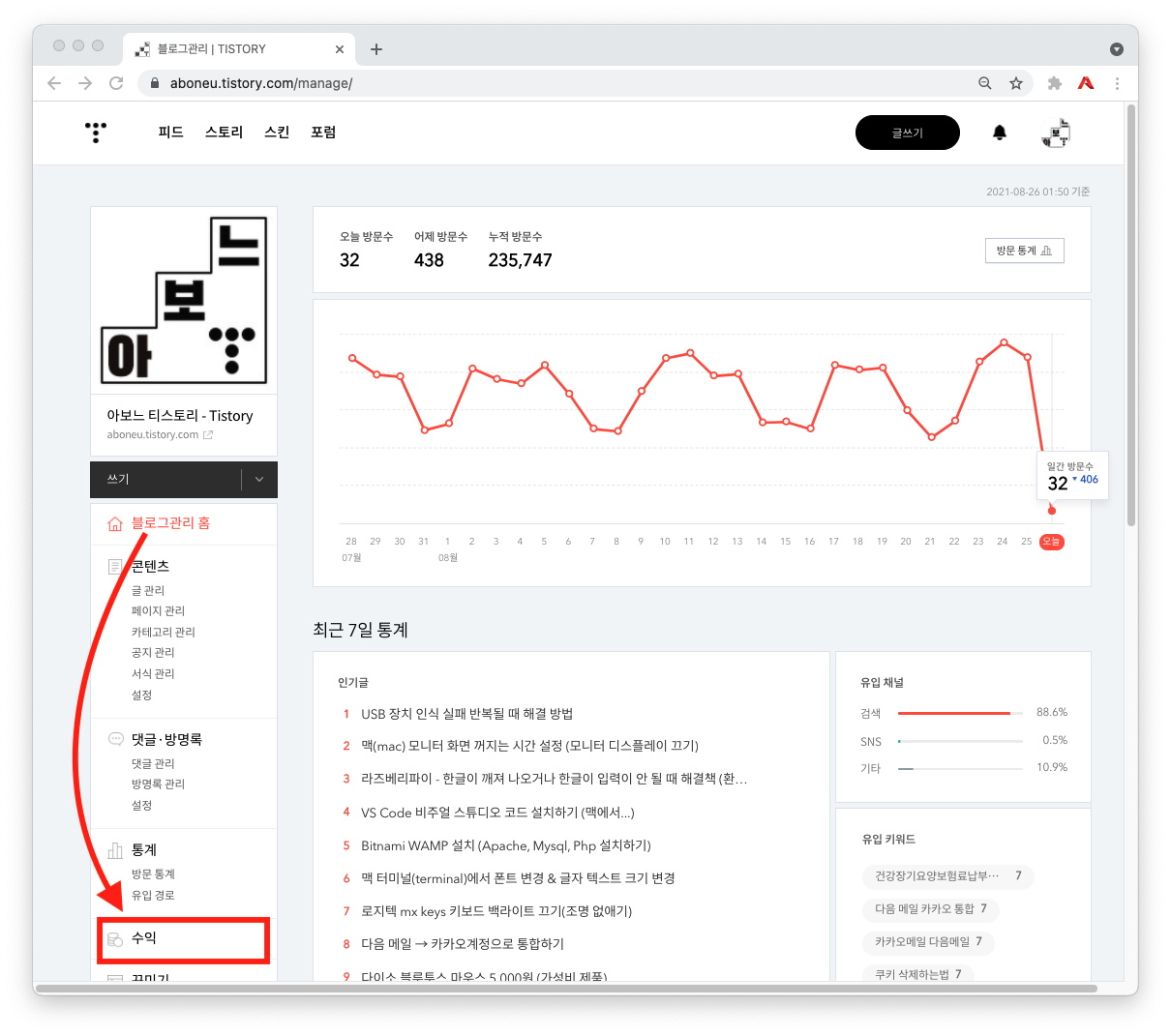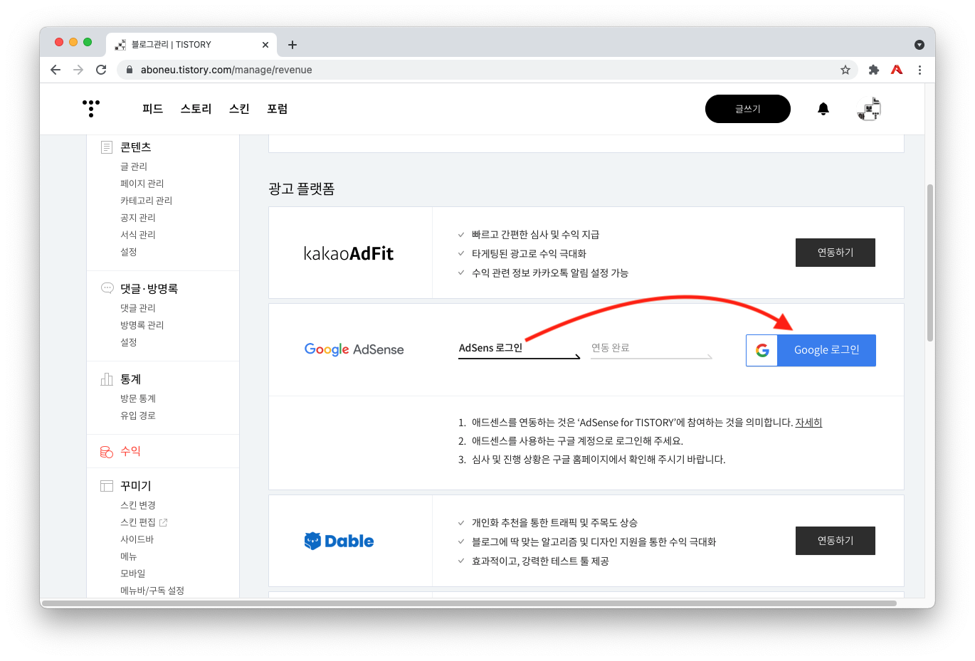 티스토리 내에서 구글 애드센스와 연동 중입니다.