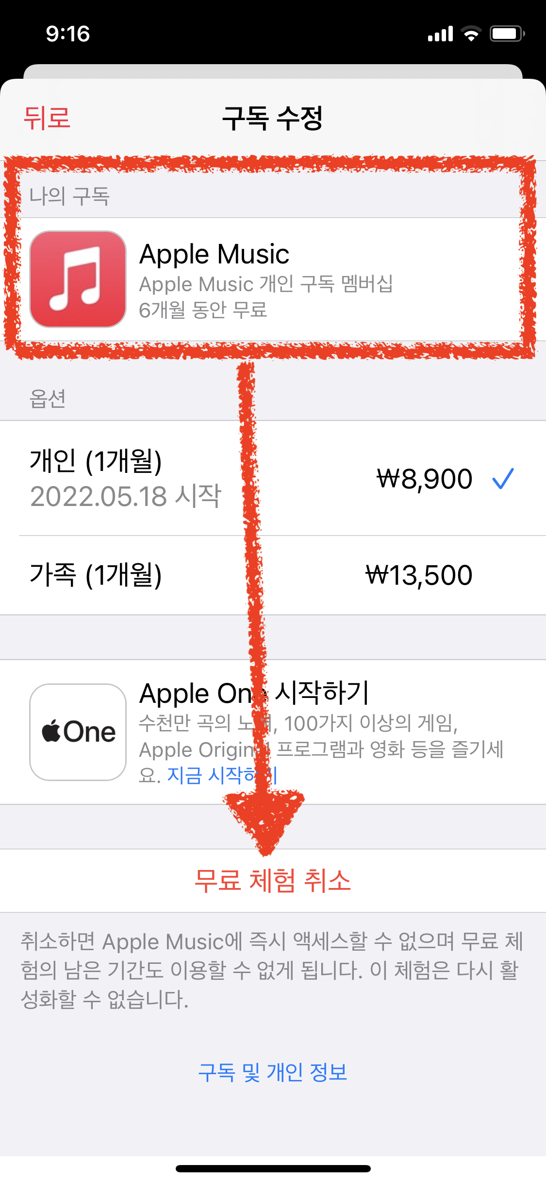 아이폰에서 무료로 사용 중인 구독 서비스를 유료 전환 전에 해지하는 법입니다.