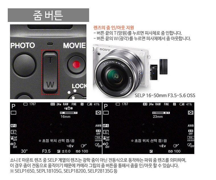 세부 기능 - 줌 버튼 (렌즈의 줌 인/아웃 지원)
