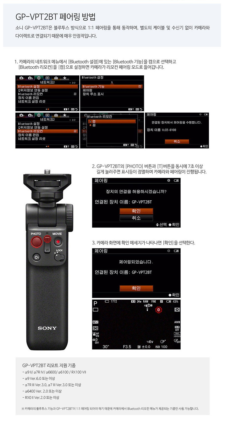 슈팅그립 GP-VPT2BT는 소니 카메라 제품의 블루투스 무선 리모컨 삼각대입니다.