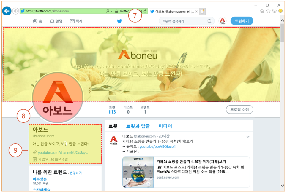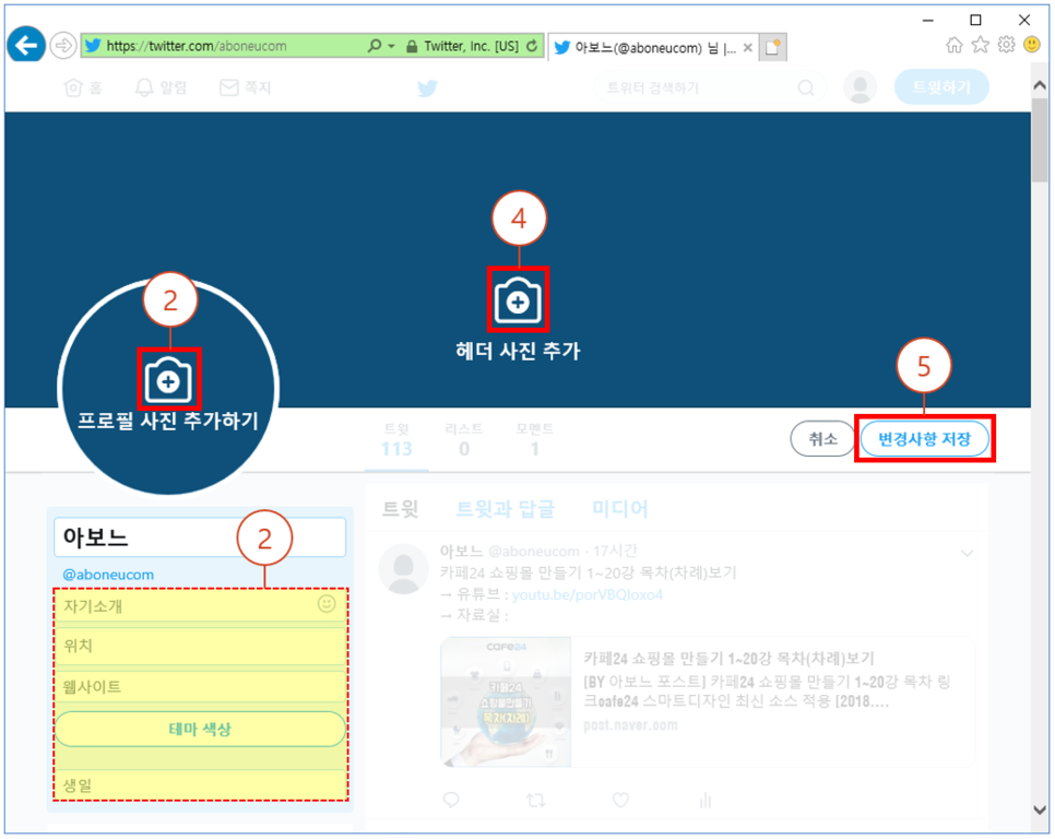 6. 트위터 고객센터 > 계정 설정 > 나만의 프로필 만들기에 보시면