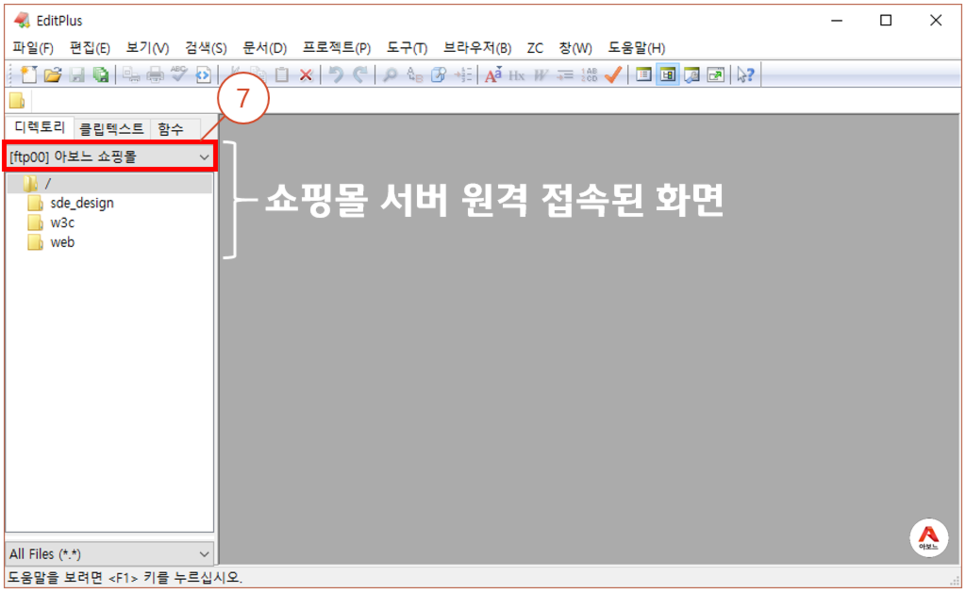 저는 FTP 서버 연동 기능이 편리한 "에디트플러스"를 기준으로 작업을 진행하겠습니다.