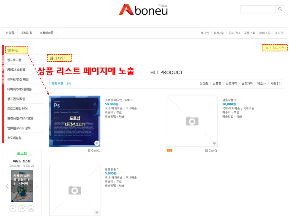 상품 리스트페이지 : http://aboneu.cafe24.com/category/웹디자인/24/