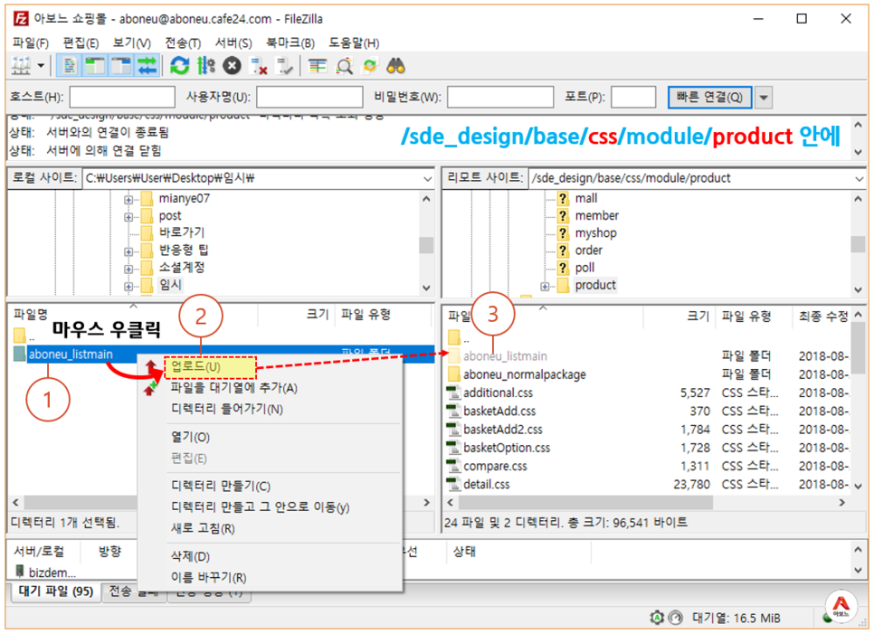 첫 번째 : /sde_design/base/css/module/product 경로 안에 폴더를 업로드