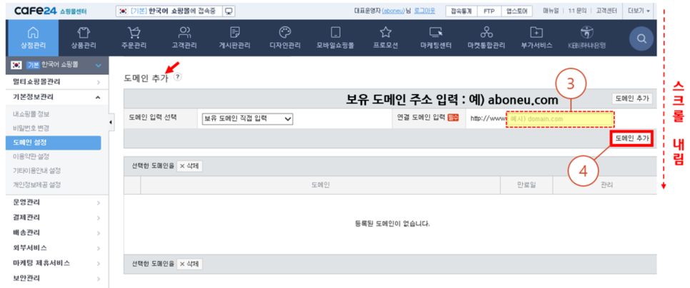 타 도메인 업체의 도메인을 카페24 쇼핑몰로 연결해야 함으로
