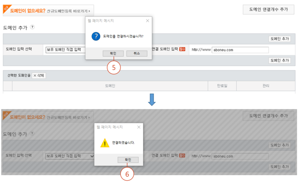 5. 도메인을 연결하시겠습니까? 에서 "확인" 클릭