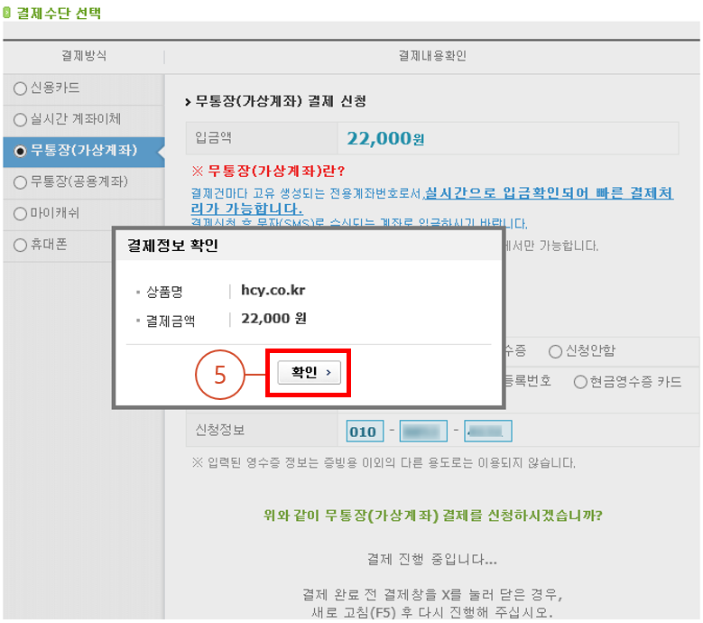 - 참고로, 저는 "무통장(가상 계좌)로 진행하지만, 편하신 대로 선택하여 진행하면 됩니다.
