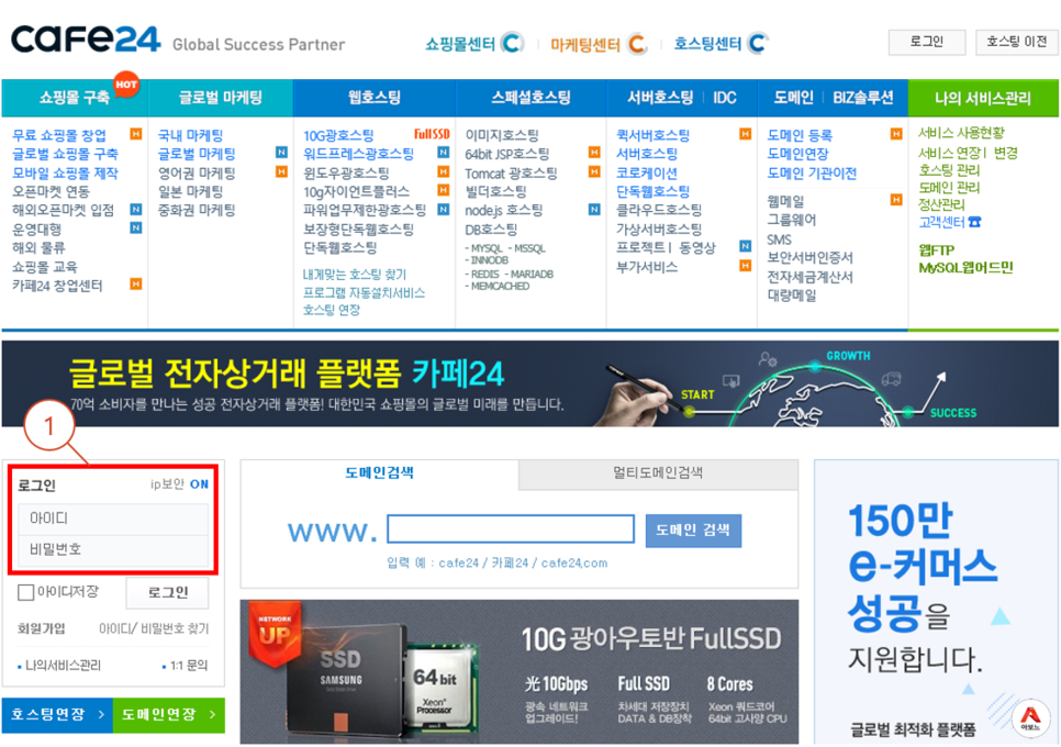 1. 카페24에 접속하여 우선, 로그인합니다.