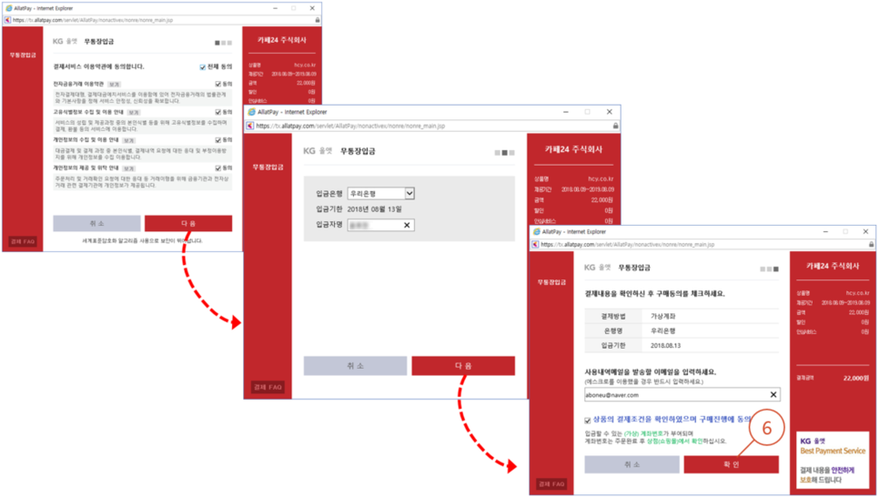 6. 그럼 이렇게 결제 진행 단계를 "다음" 클릭해서 진행합니다.
