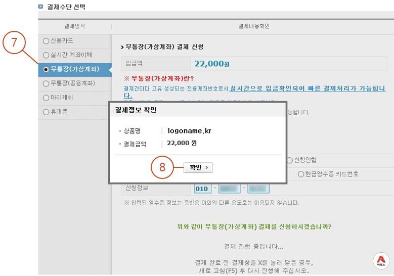 7. 결제 방식을 선택한 후