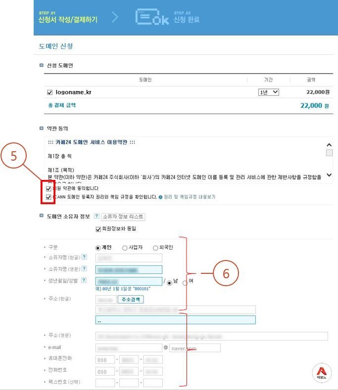6. 도메인 소유자 정보를 입력합니다.
