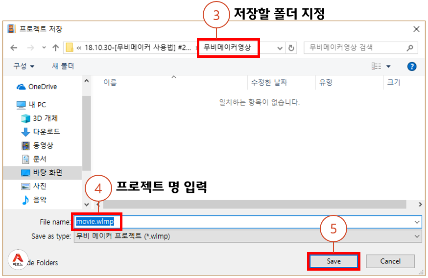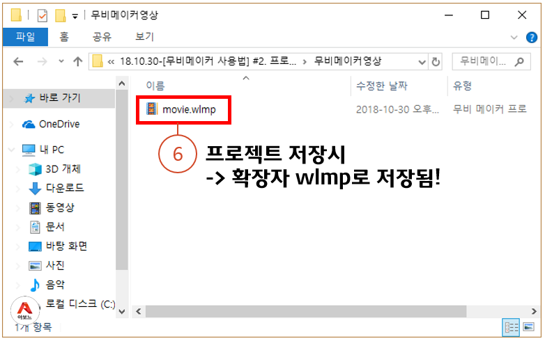 6. 결과를 보시면 프로젝트로 저장 시 확장자가. wlmp로 저장됩니다!