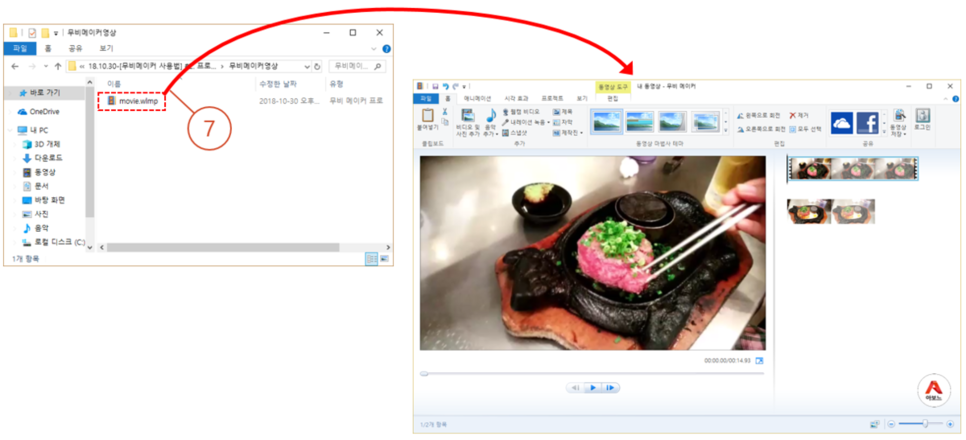 프로젝트를 저장한 파일 movie.wlmp를 더블 클릭하면