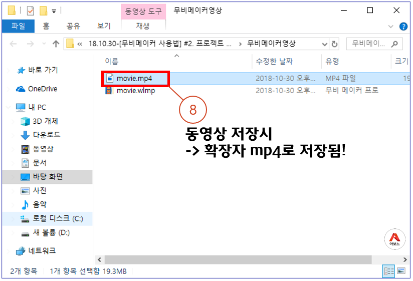 8. 결과를 보시면 동영상으로 저장 시 확장자가. mp4로 저장됩니다!