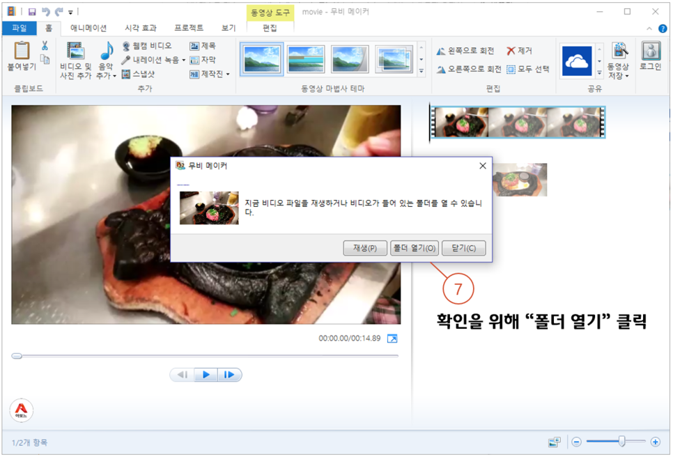 7. 저장된 파일 확인을 위해 "폴더 열기" 클릭