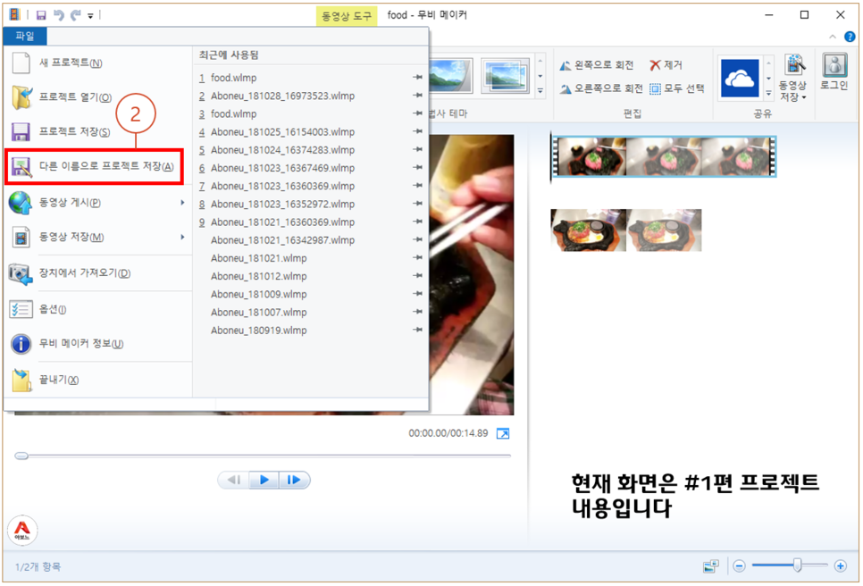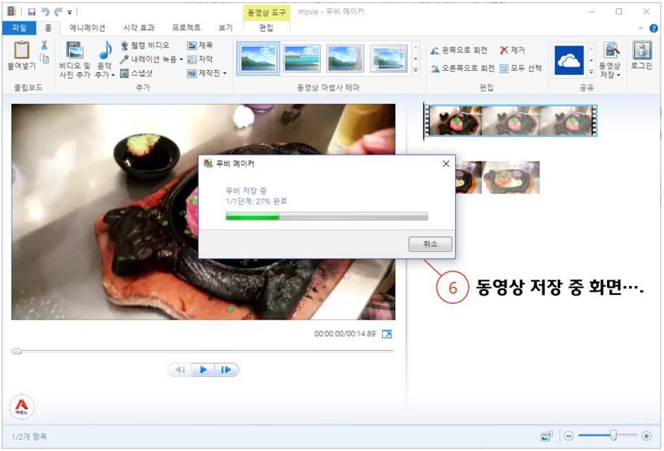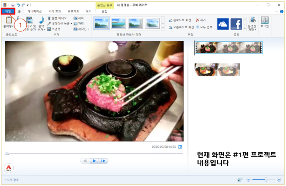 1. 이전 1편 내용에 이어서 무비메이커 창이 열린 상태에서