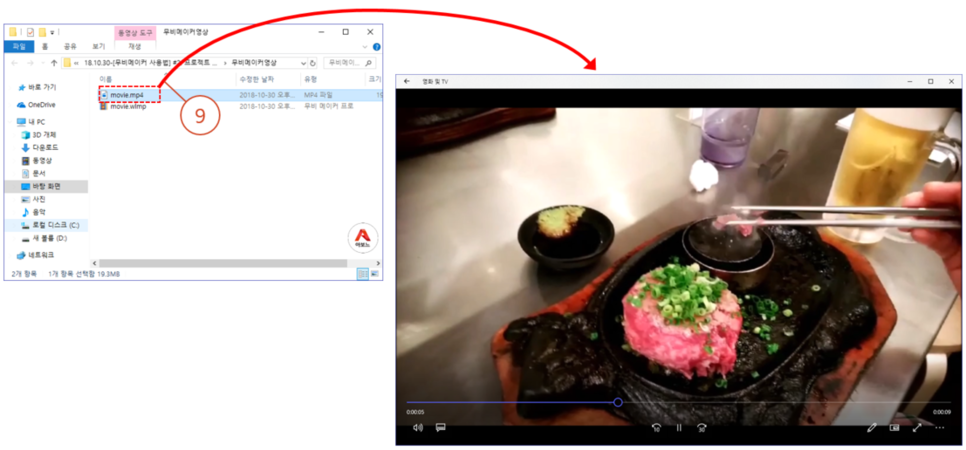 9. 동영상으로 저장한 파일 movie.mp4를 더블 클릭하면