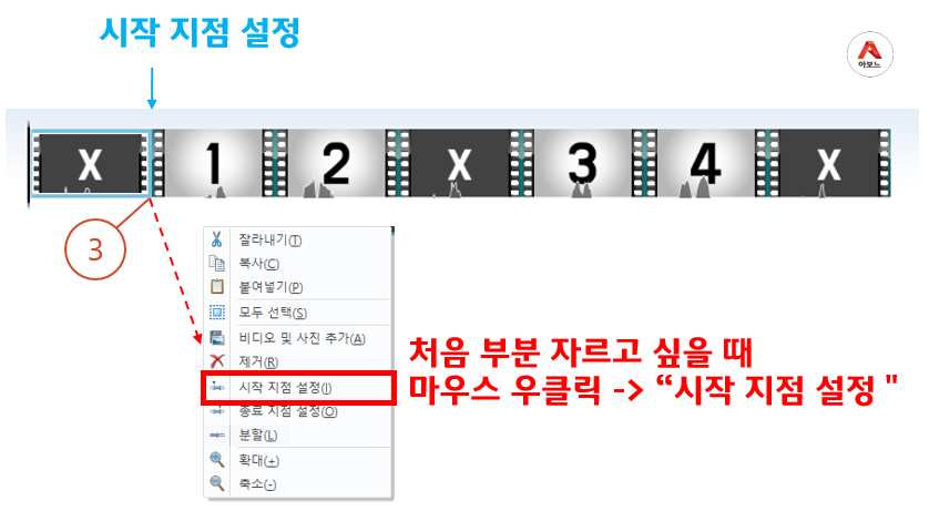 3번째 : 시작 지점 설정(처음 부분 자르고 싶을 때 사용) - 하단 유튜브 영상 참고!