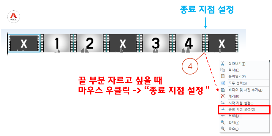 4번째 : 종료 지점 설정(끝 부분 자르고 싶을 때 사용) - 하단 유튜브 영상 참고!