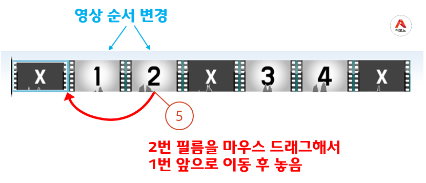 2번 필름을 마우스 드래그해서 1번 앞으로 이동 후 놓음