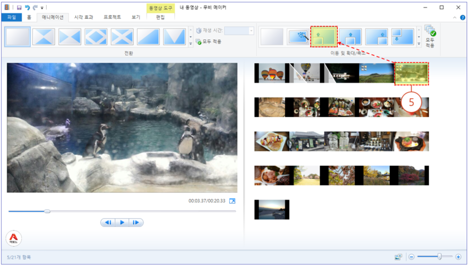 5. 한 번 더 사진 선택 후 → 새로운 이동 및 확대 축소 효과 선택