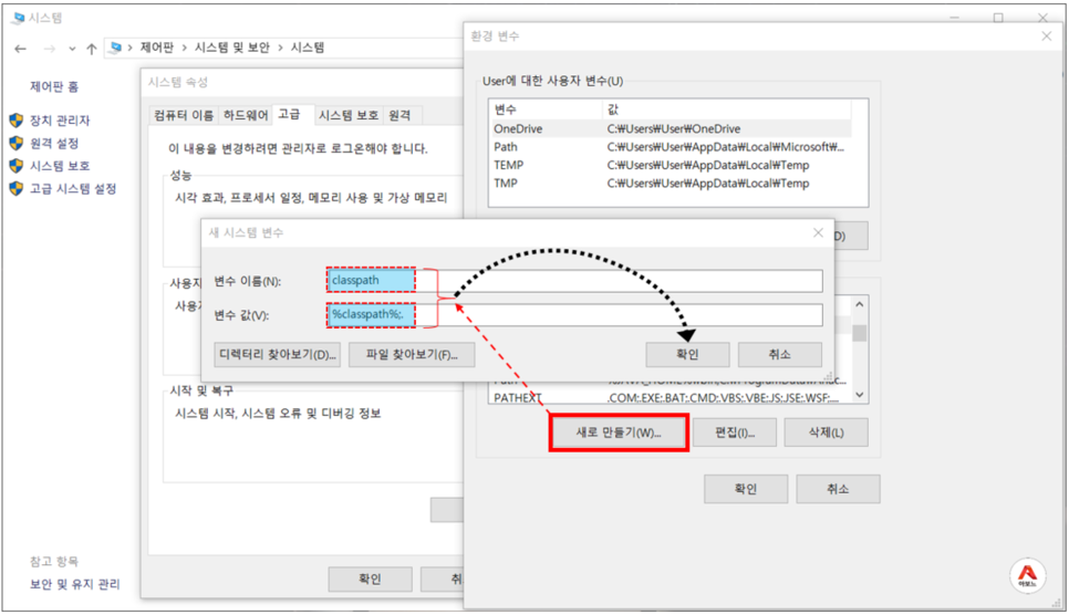2-3. 같은 방식으로 "새로 만들기"를 클릭 후 새 시스템 변수를 입력합니다.