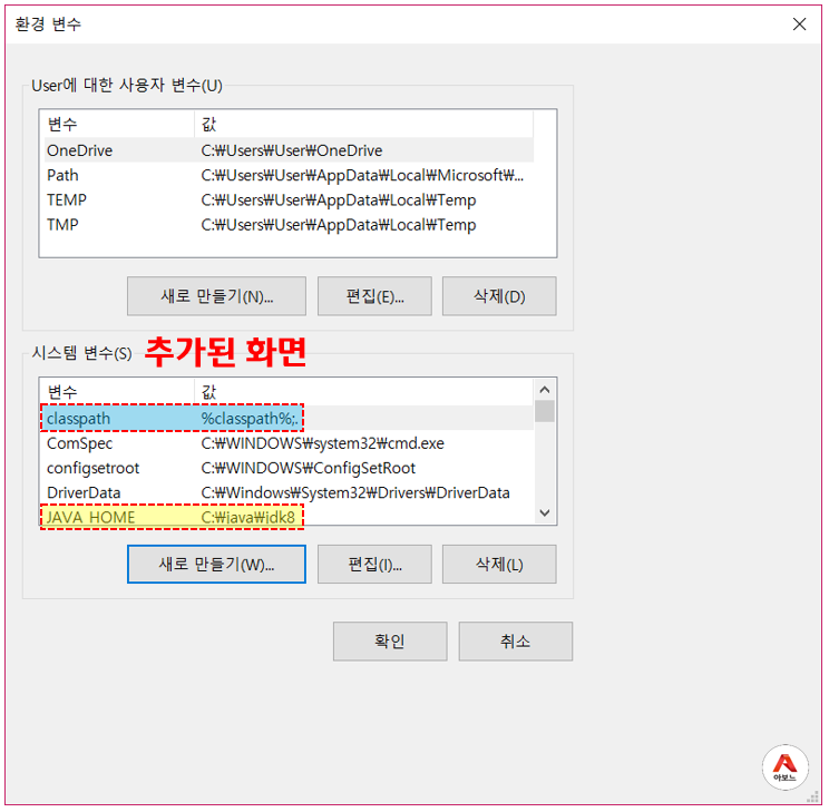 2-4. classpath와 JAVA_HOME이 추가된 화면입니다.