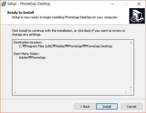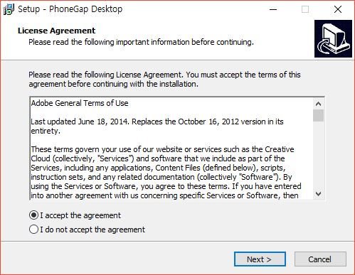 다운받은 "PhoneGapSetup-win32.exe" 파일을 실행합니다.