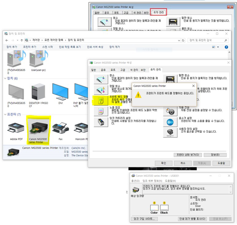 -> "프린트 헤드 정렬 버튼" 클릭하면 됩니다.