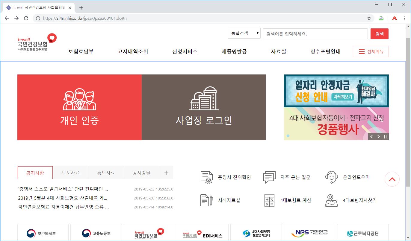 - 사회보험징수포털 http://si4n.nhis.or.kr