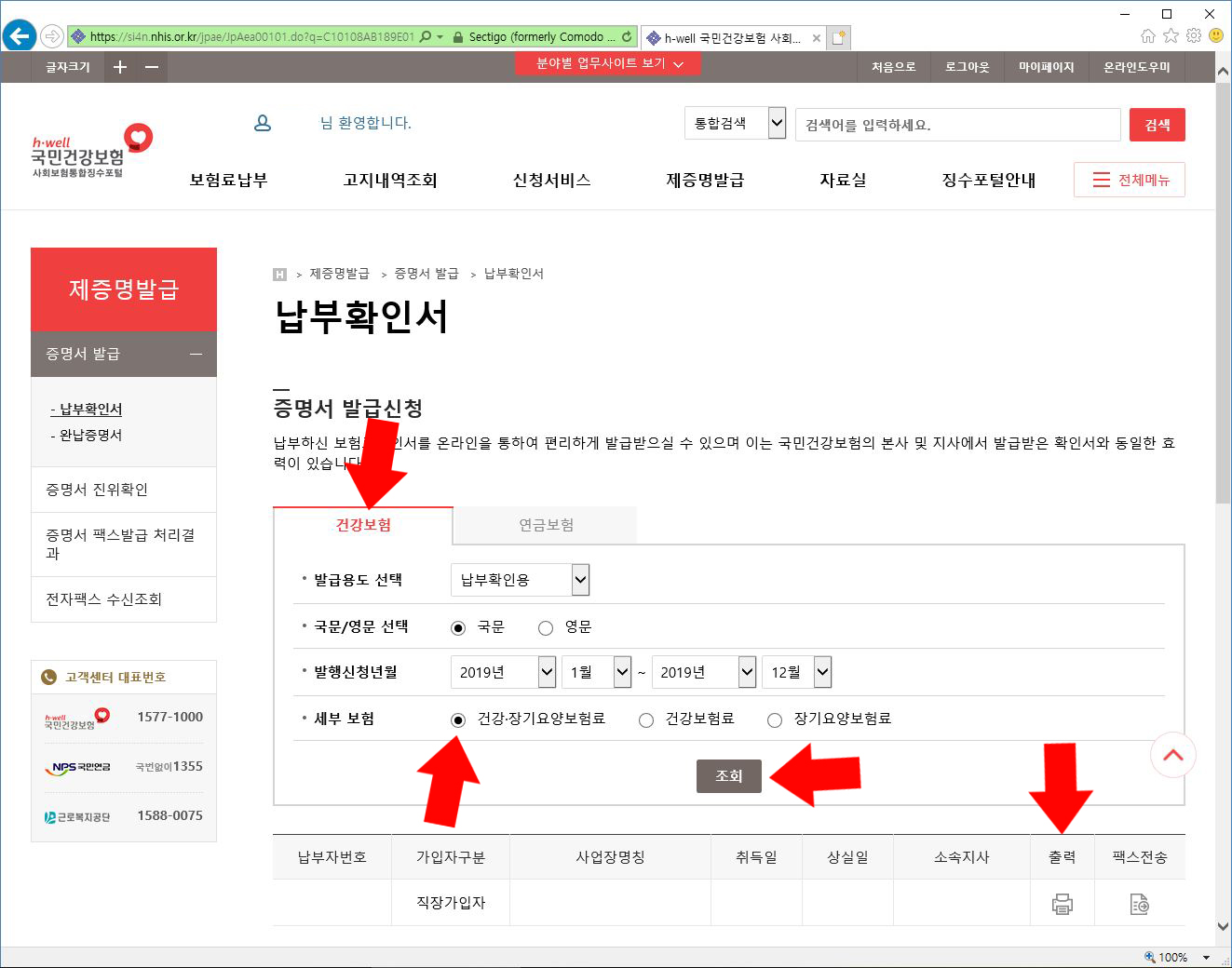 인터넷 출력 사이트는 국민건강보험에서 합니다.