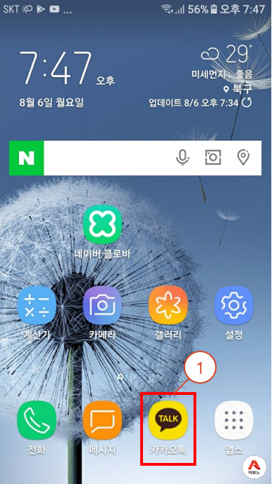1. 휴대폰 첫 화면에서 "카카오톡" 아이콘을 클릭합니다.