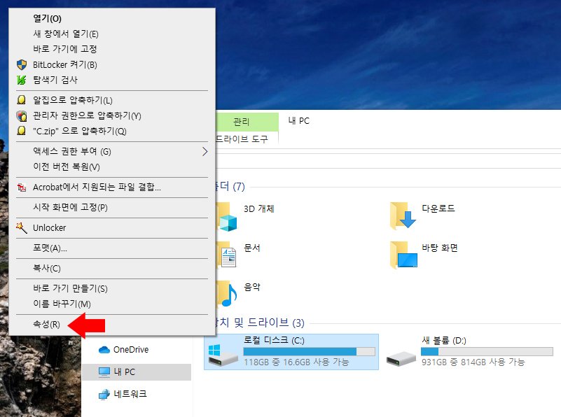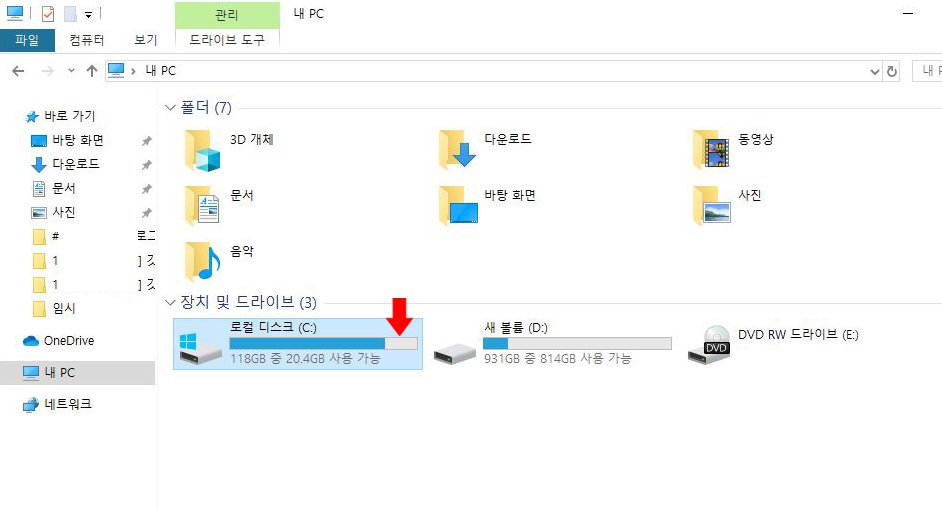 윈도우가 업데이트 된 후 C폴더를 확인하기 용량이 갑자기 10G 정도 늘어나 있는 경우가 있습니다.