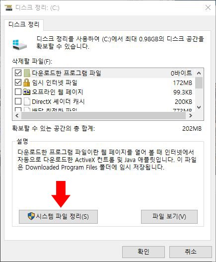 3. 삭제할 파일이 선택된 상태에서 "시스템 파일 정리" 를 클릭합니다.