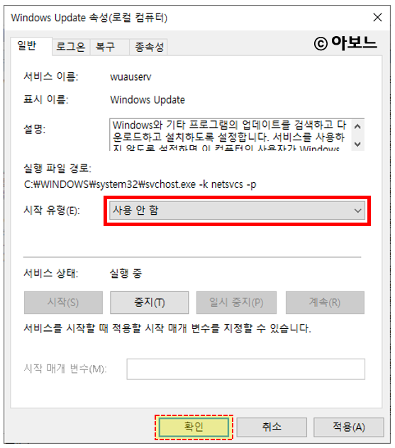 그럼, 이제부터 윈도우 업데이트가 이루어지지 않습니다.
