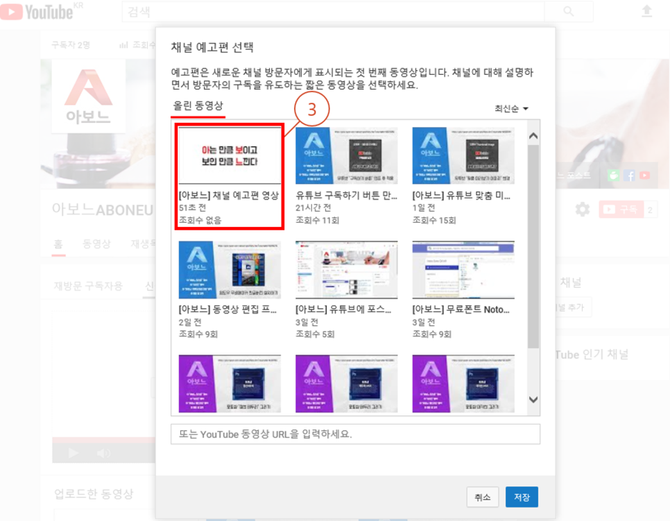 참고 : 아보느 포스트 - 채널 예고편 영상 보기