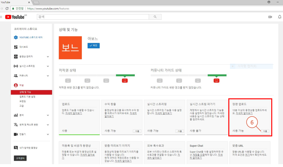 (그럼 15분 이상의 동영상을 업로드 가능합니다.)