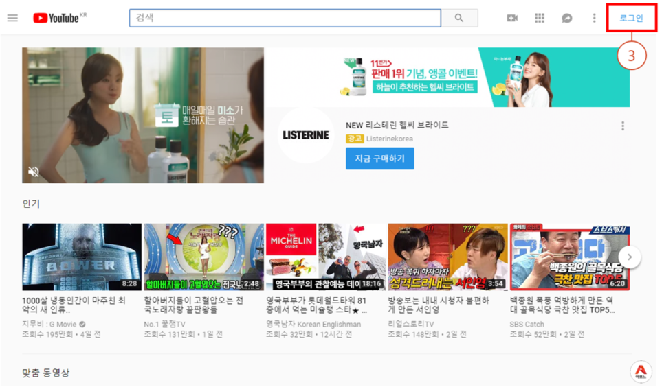 3. 유튜브에 로그인을 합니다.