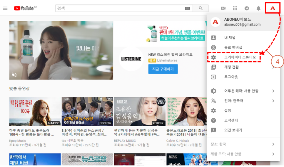 유튜브 채널 개설 후