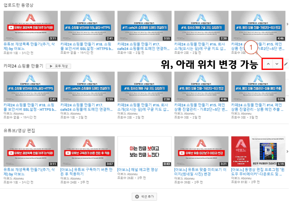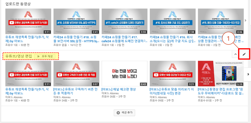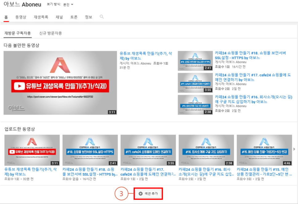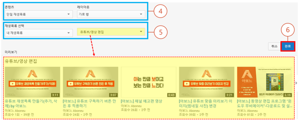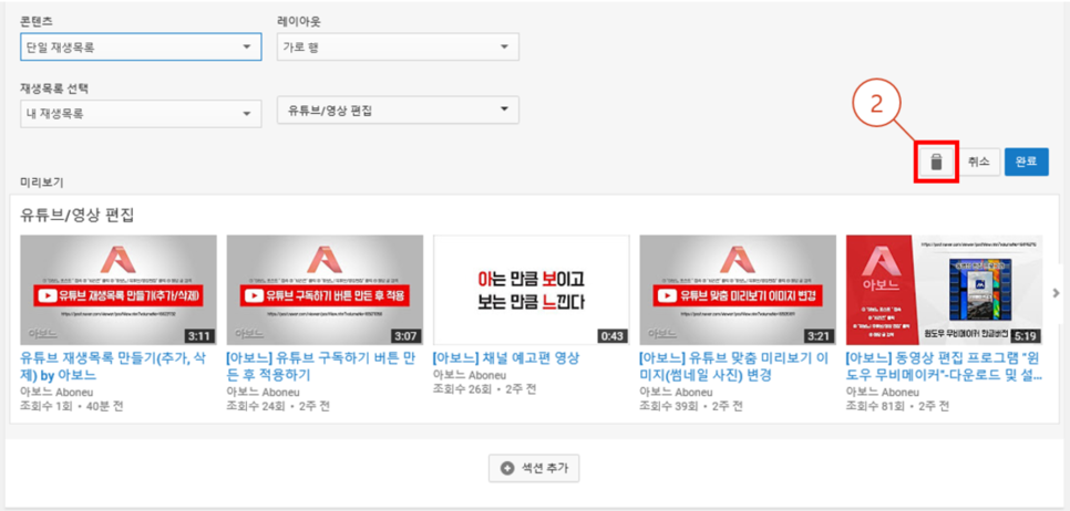 참고로, 미리 재생목록을 만들어 두어야 합니다.