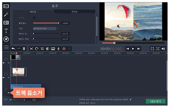 4. 두 개의 영상 중 한 개의 음악 제거 (트랙 음소거)