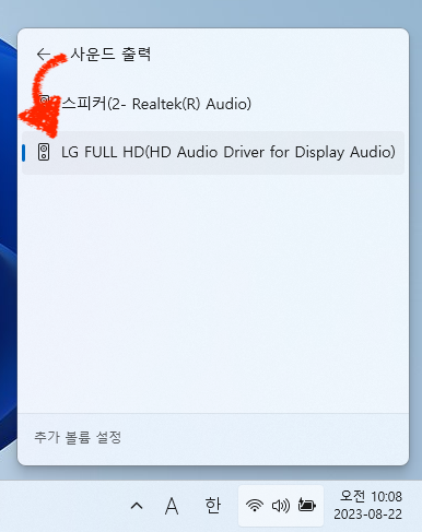자신의 스피커 사운드 출력 장치가 제대로 선택되었는 지 확인