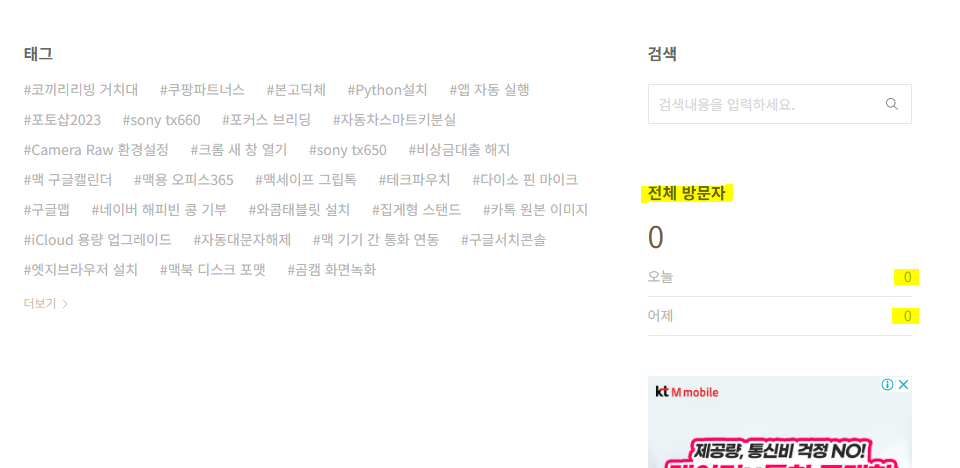 "현재 티스토리 방문자 카운트 집계가 제대로 되지 않고 있다. 23년 9월 13일 기준"