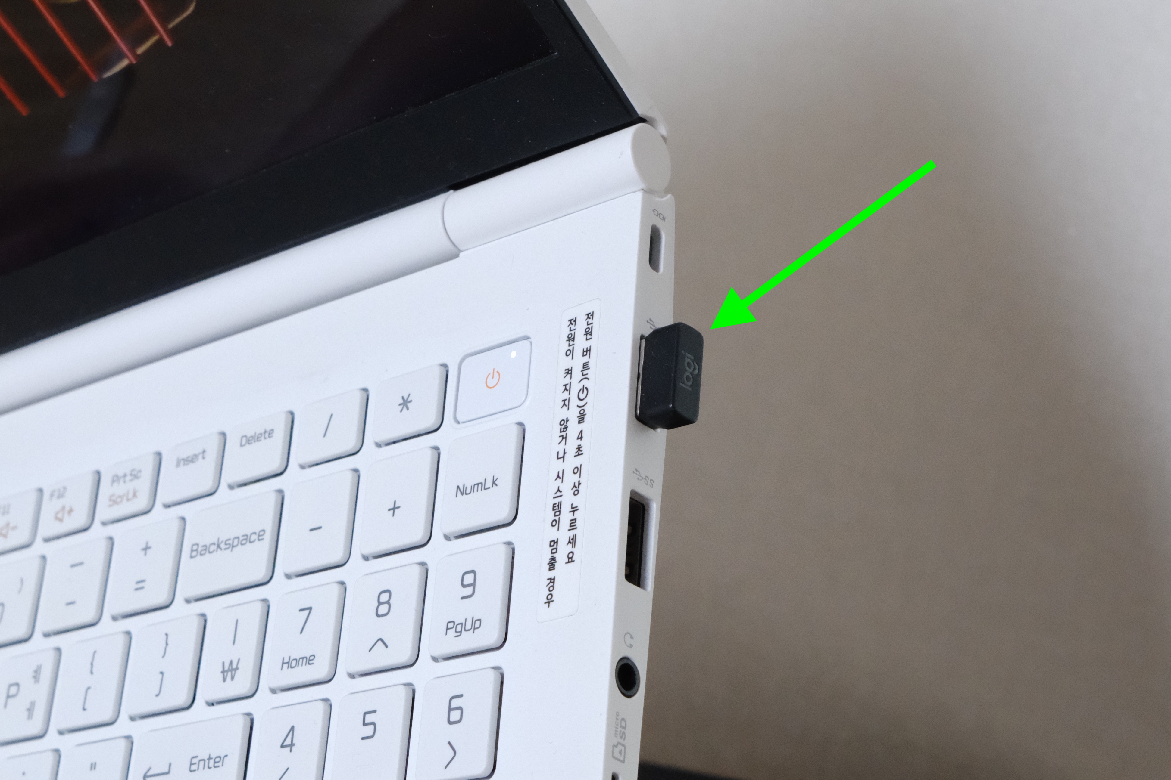 1번 더 누르면: 녹색 불빛으로 USB 수신 모드가 된다.